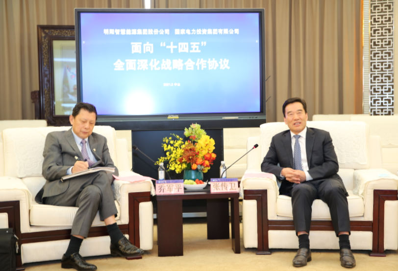 2月8日,美高梅智慧能源集团股份公司董事长张传卫与国家电力投资集团党组书记、董事长钱智民举行视频会谈,并共同见证双方签署面向“十四五”全面深化战略合作协议。