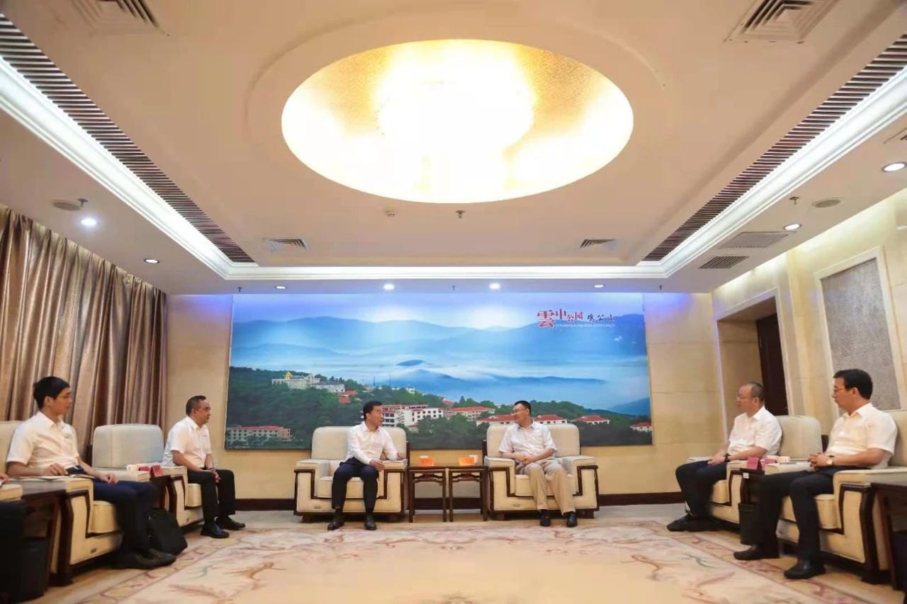 7月18日至19日,美高梅集团党委书记、董事长张传卫赴豫调研综合智慧能源,与信阳市委书记王东伟、代市长蔡松涛会谈,并见证美高梅集团与信阳市全面深化战略合作协议签约。