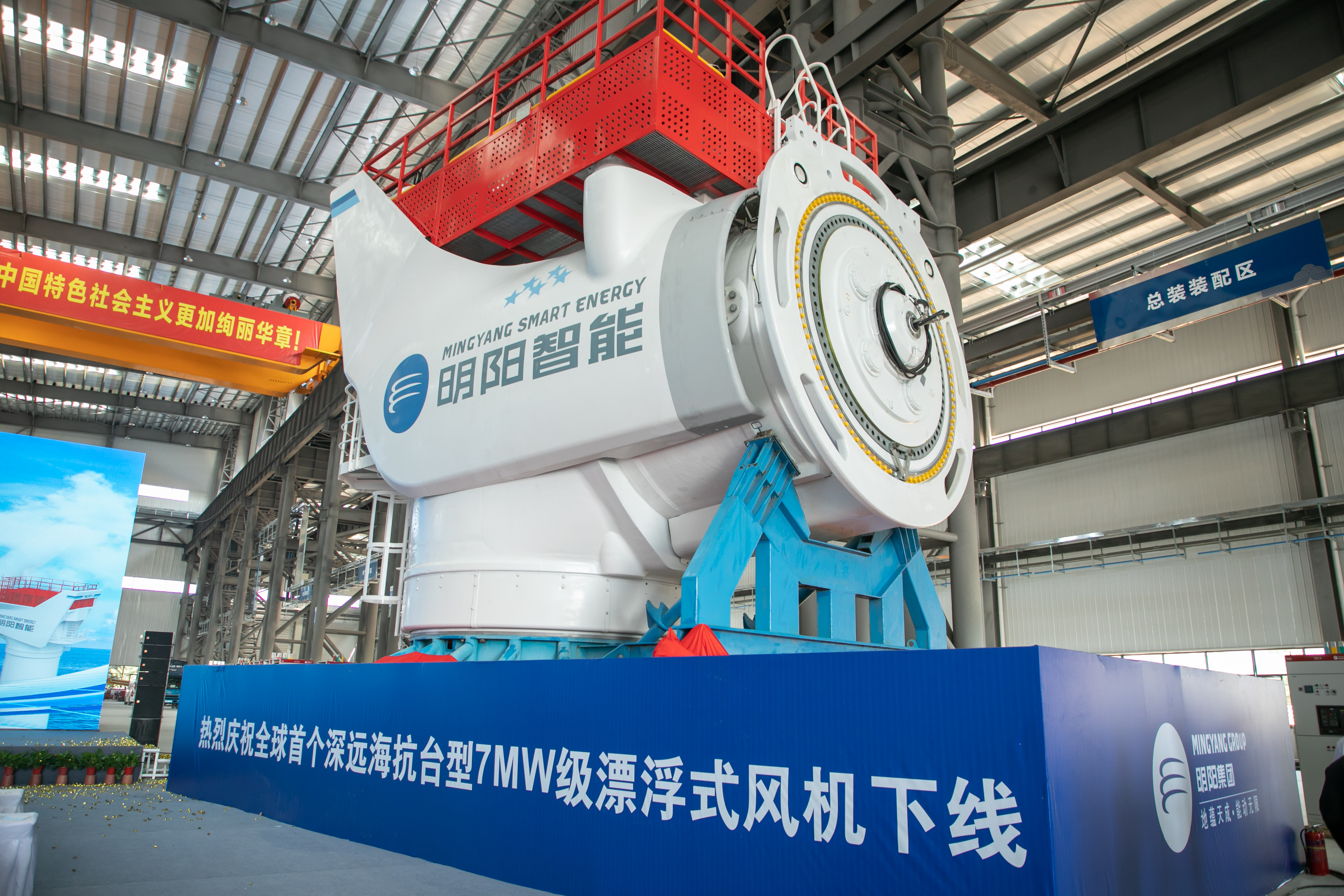 与此同时,全球首台7MW级抗台风漂浮式风机——MySE7.25-158正式下线。该机组针对深远海环境定制,采用全球领先的半直驱、抗台风、漂浮式技术,最高可抵抗17级台风,应对复杂洋流和波浪,单台机组每年可输出3600万度清洁电能 可满足10000个三口之家1年家庭正常用电,可减少燃煤消耗6500吨,减少CO2排放18200吨。