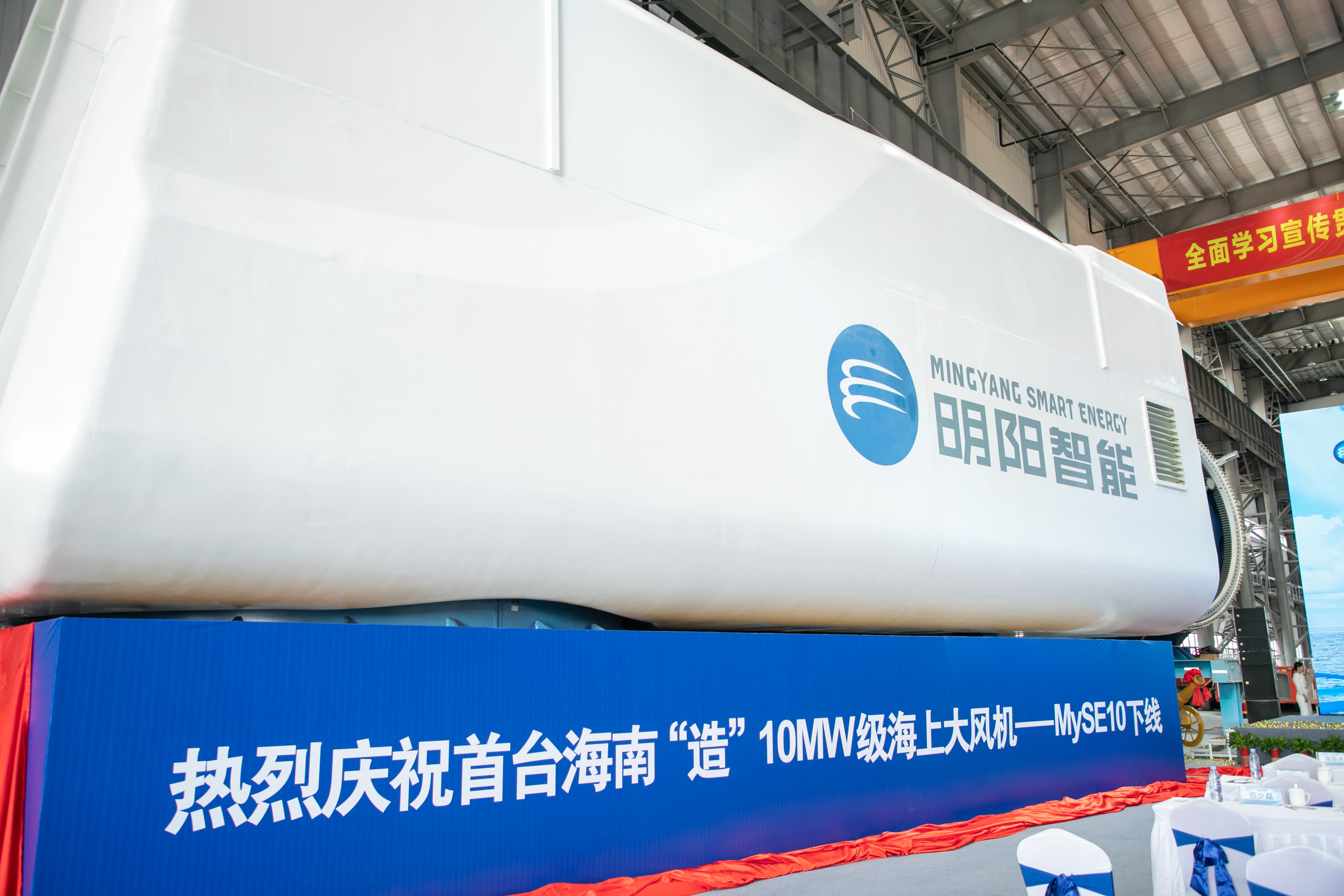 同步下线的还有首台海南“造”10MW海上大兆瓦风电机组。该机组采用先进气动翼形设计叶片,配置气动套件技术,达到高气动效率。240m+超大叶轮直径,扫风面积达45240㎡,相当于6.5个标准足球场大小,凭借可靠性设计、优异的抗台风性能、富有竞争力的发电量和卓越的经济性,领跑海上风电平价的新征程。